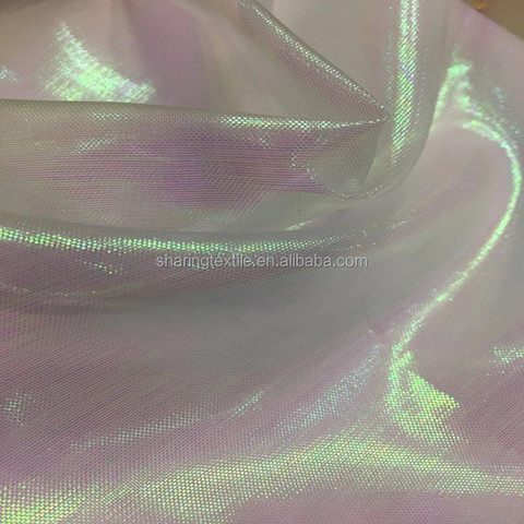 Stock de telas de poliéster y nailon, colores brillantes, arcoíris, cristal iridiscente, Organza, para vestido de boda